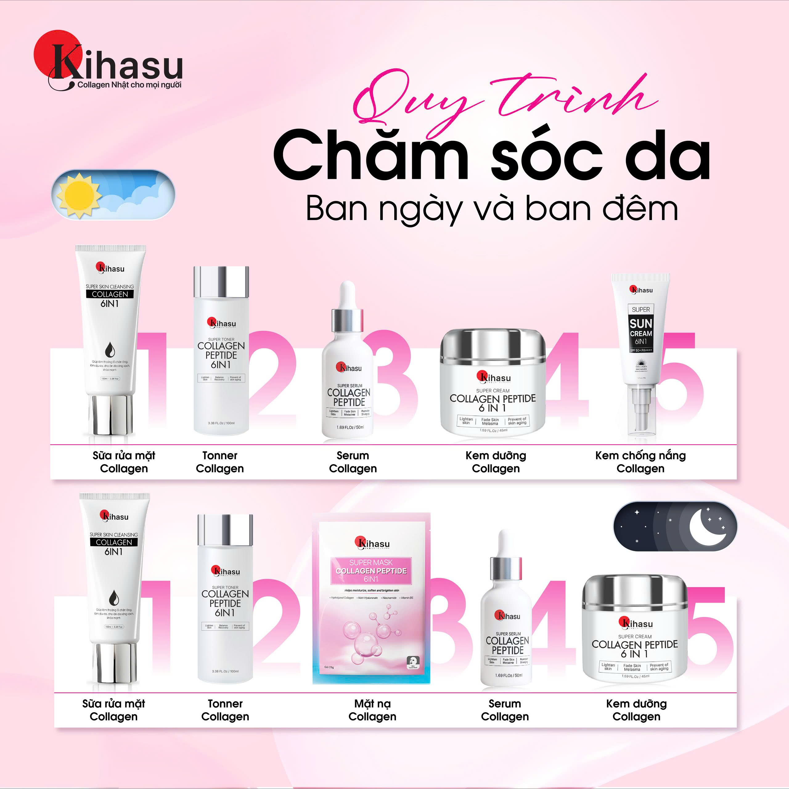 Để kem dưỡng Collagen Kihasu phát huy tác dụng tốt nhất, bạn nên sử dụng sản phẩm theo quy trình chăm sóc da bài bản, vào cả ban ngày và ban đêm.